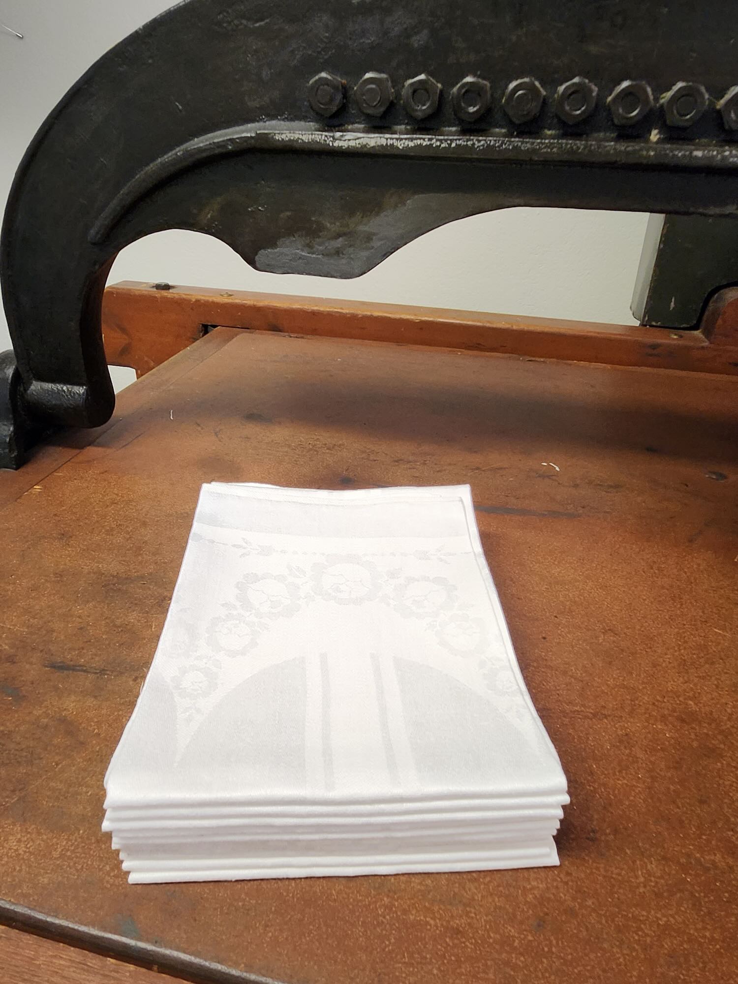 Vi tar emot tvättat linne som exempelvis servetter, lakan, dukar och örngott för mangling med stenmangel. Tänk på att inte använda sköljmedel eller torktumla linnetextilierna innan de lämnas in.